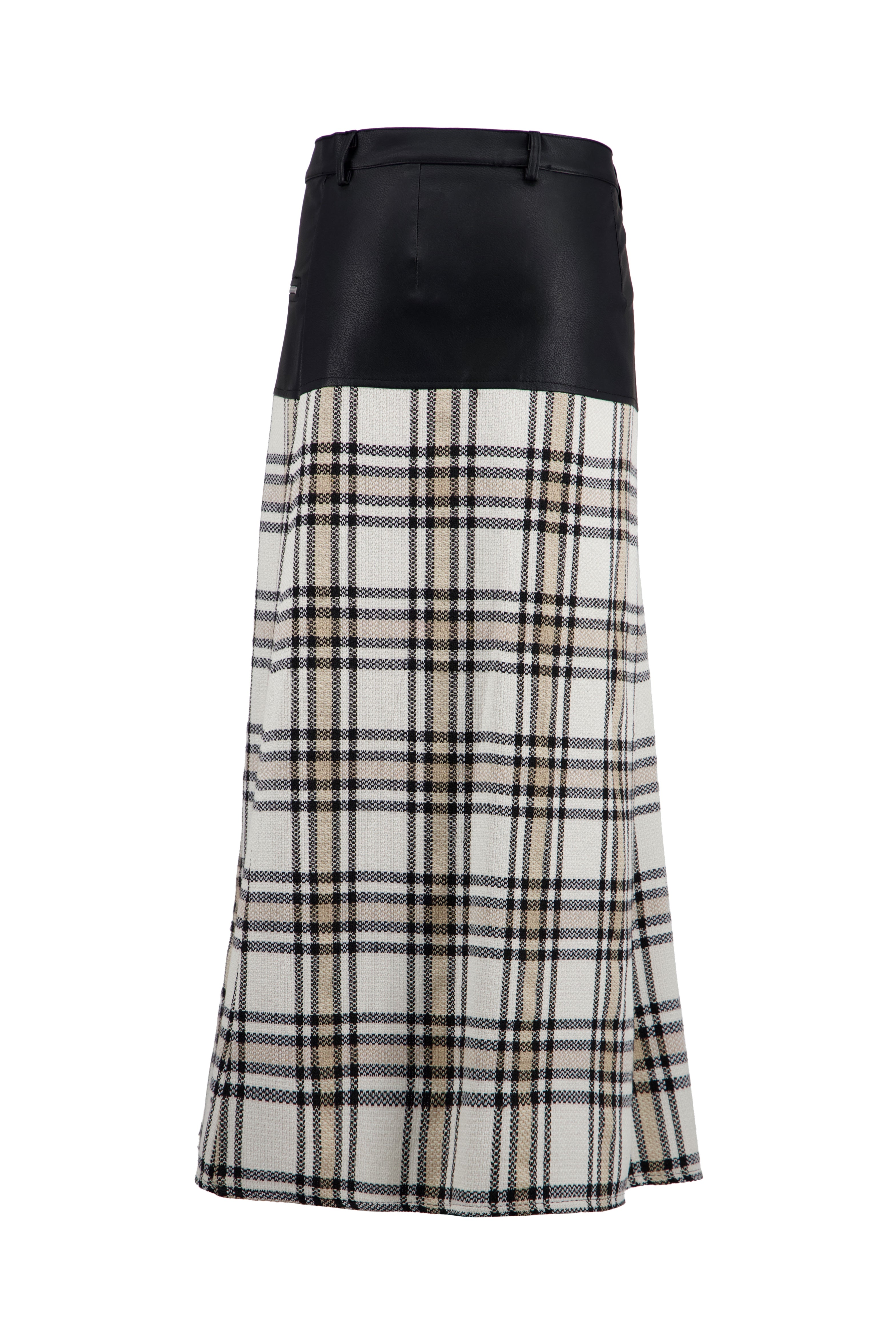 Refresh availabilityA statement piece engineered for the modern rebel. The Tartan Clash Maxi Skirt blends rich faux-leather panelling with textured plaid inserts, creating a powerful contrast that moves with confidence.