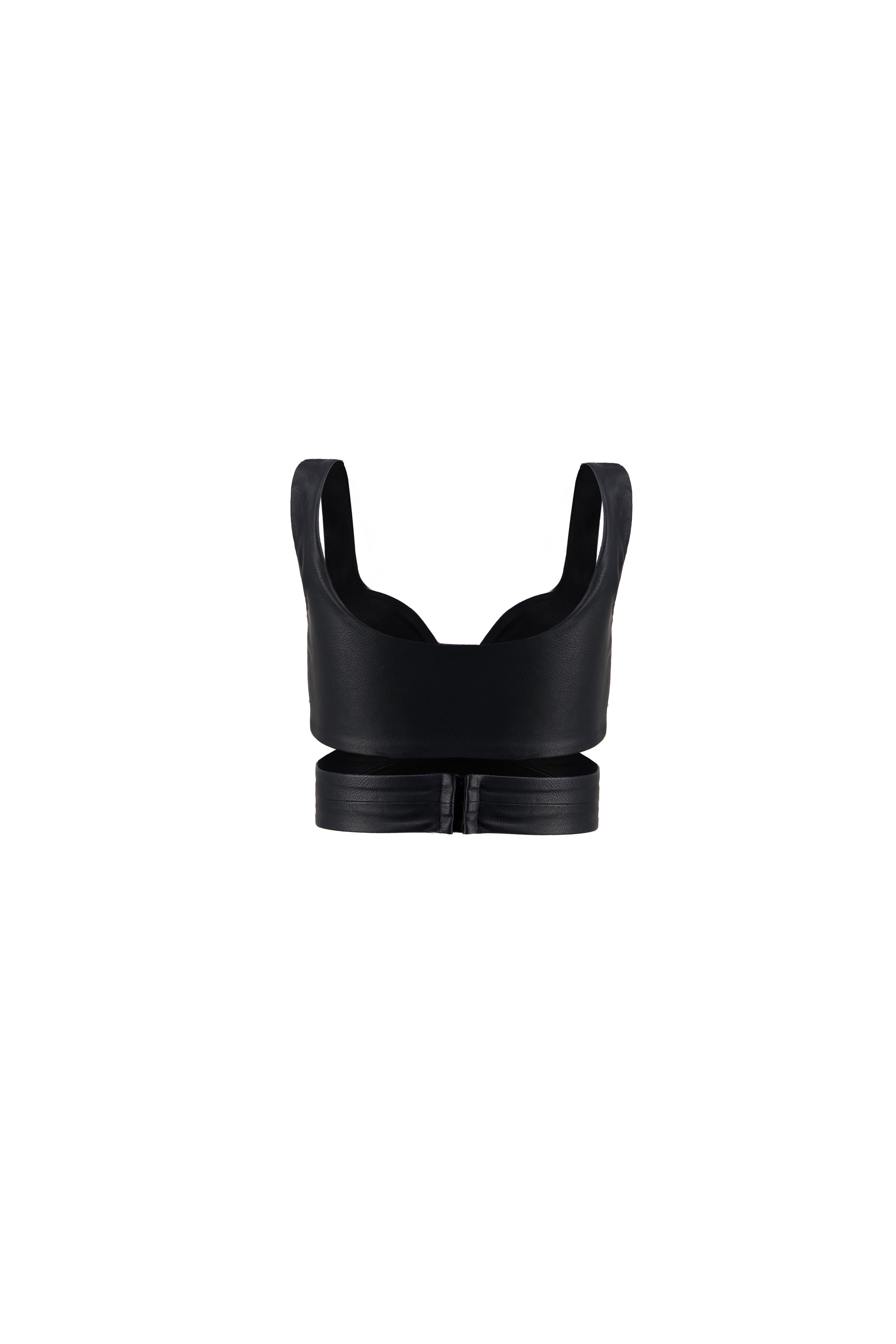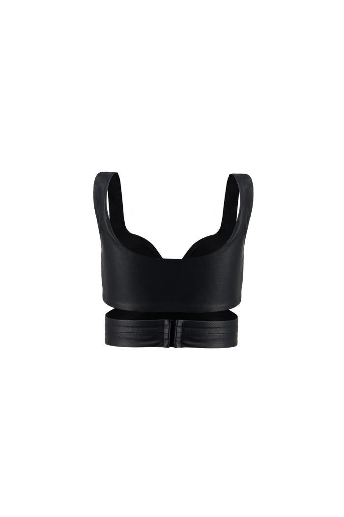 Refresh availabilityThe Crossline Leather Top is crafted from buttery-soft faux leather, designed to contour the body with a sculpted, wrapped fit. Its crossover front enhances the bust while offering structured support, giving a clean yet sultry finish.