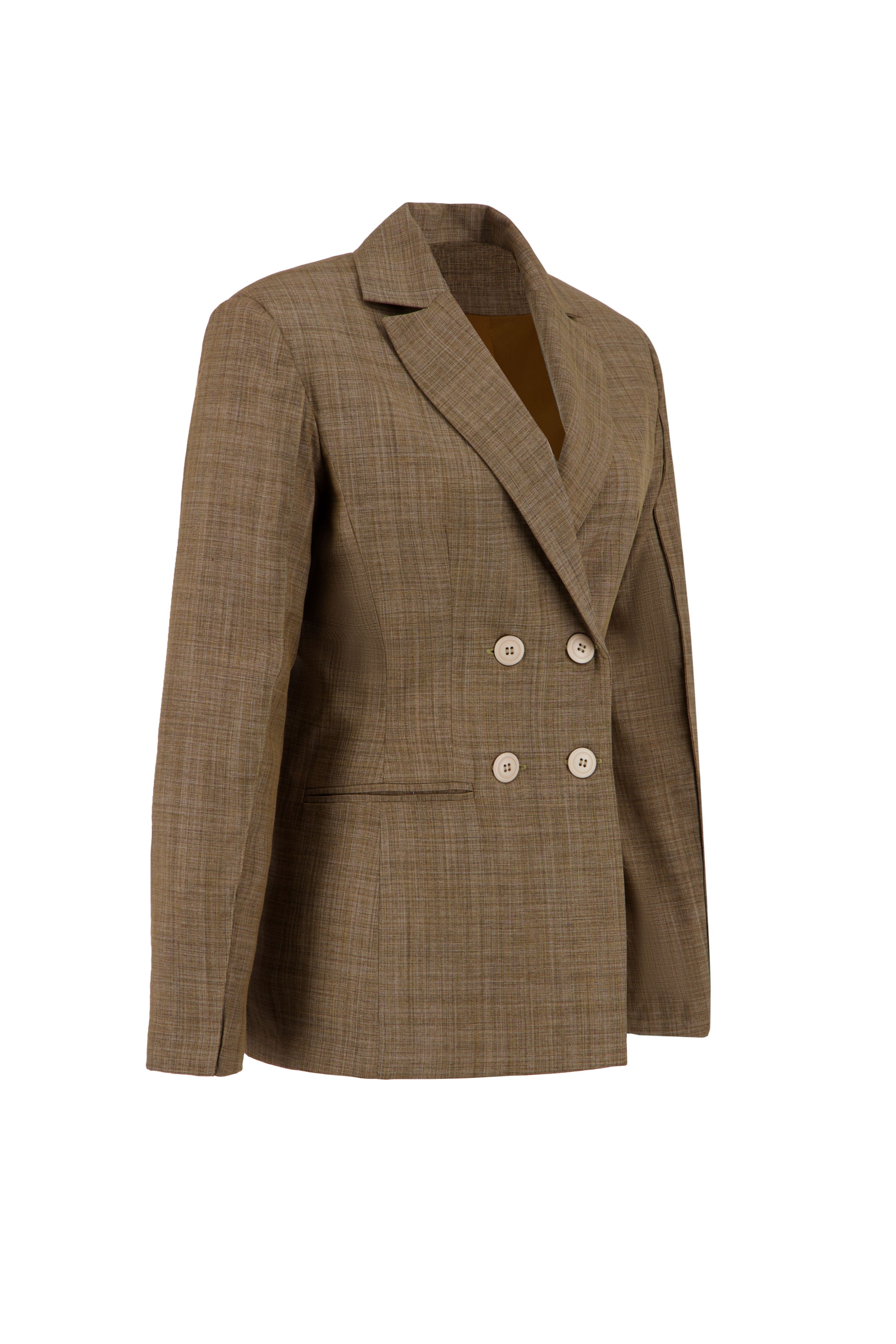 Refresh availabilityComplete your summer wardrobe with our Jorts Blazer! This beige oversized blazer perfectly complements the jorts in our set. Look effortlessly stylish and put-together while staying comfortable in this trendy outfit. Upgrade your summer fashion game now!