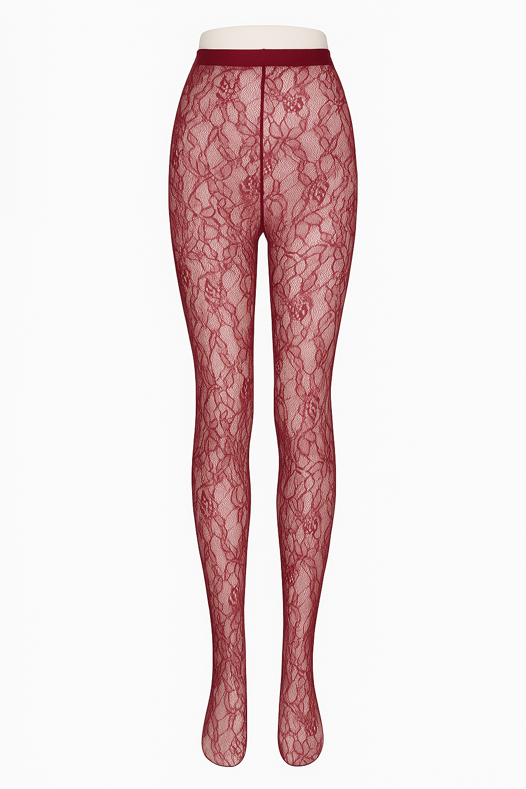 Refresh availabilitySheer floral lace tights in rich crimson — designed to elevate any look with texture and contrast.